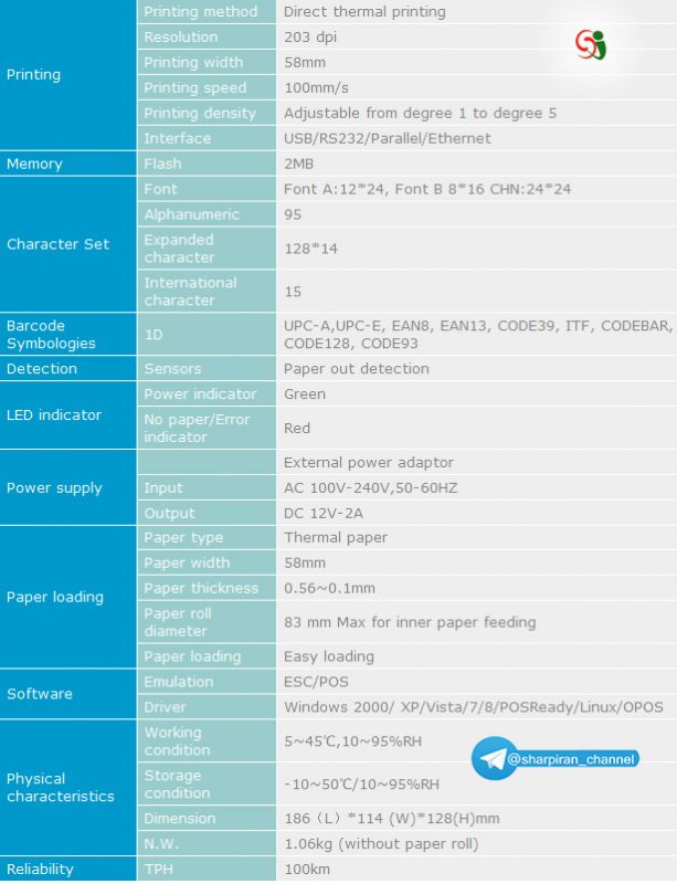 اطلاعات کامل فیش پرینتر Xprinter مدل xp d300h